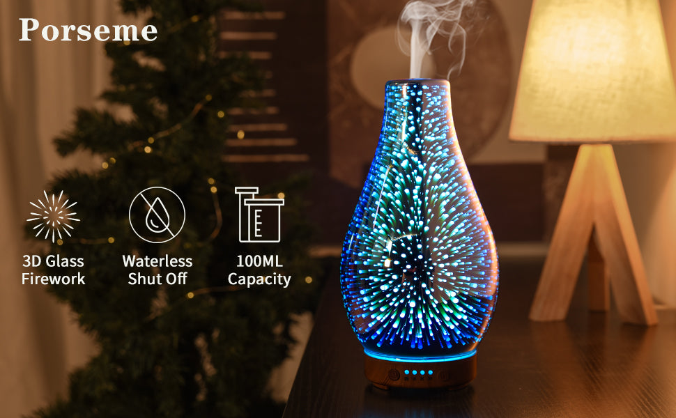• Essential oils should never be heated or else they’ll lose their beneficial properties and will be useless.Our Porseme glass essential oil diffusers are using Ultrasonic Device which is rapid vibration in the water atomizes the water and disperses it into the air.It ensure that the oils retain their effectiveness and quality.A nourishing atmosphere will help relieve anxiety and refund stress. Allowing you to reap their benefits!