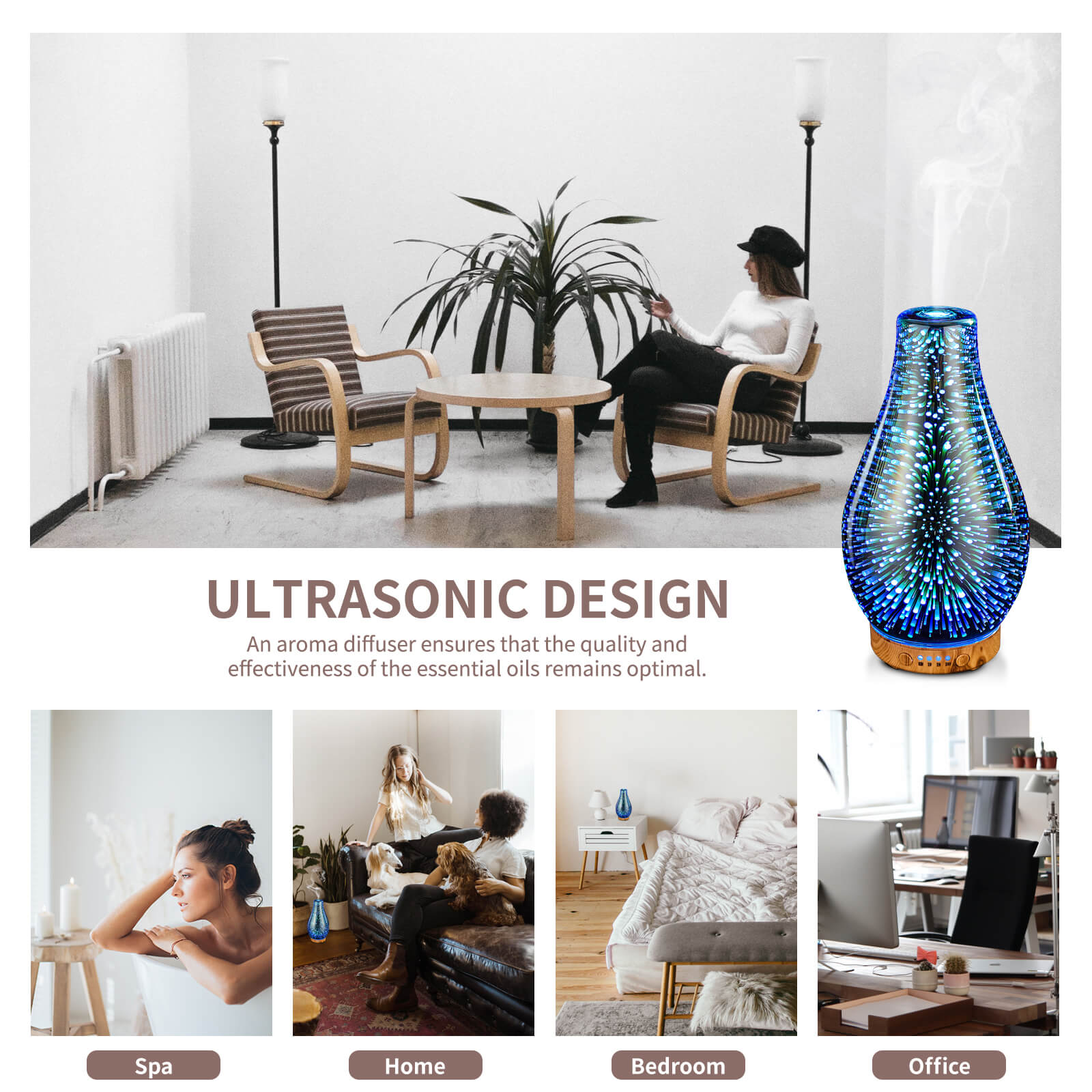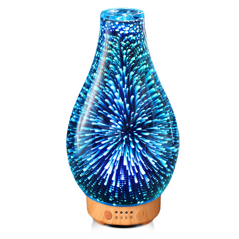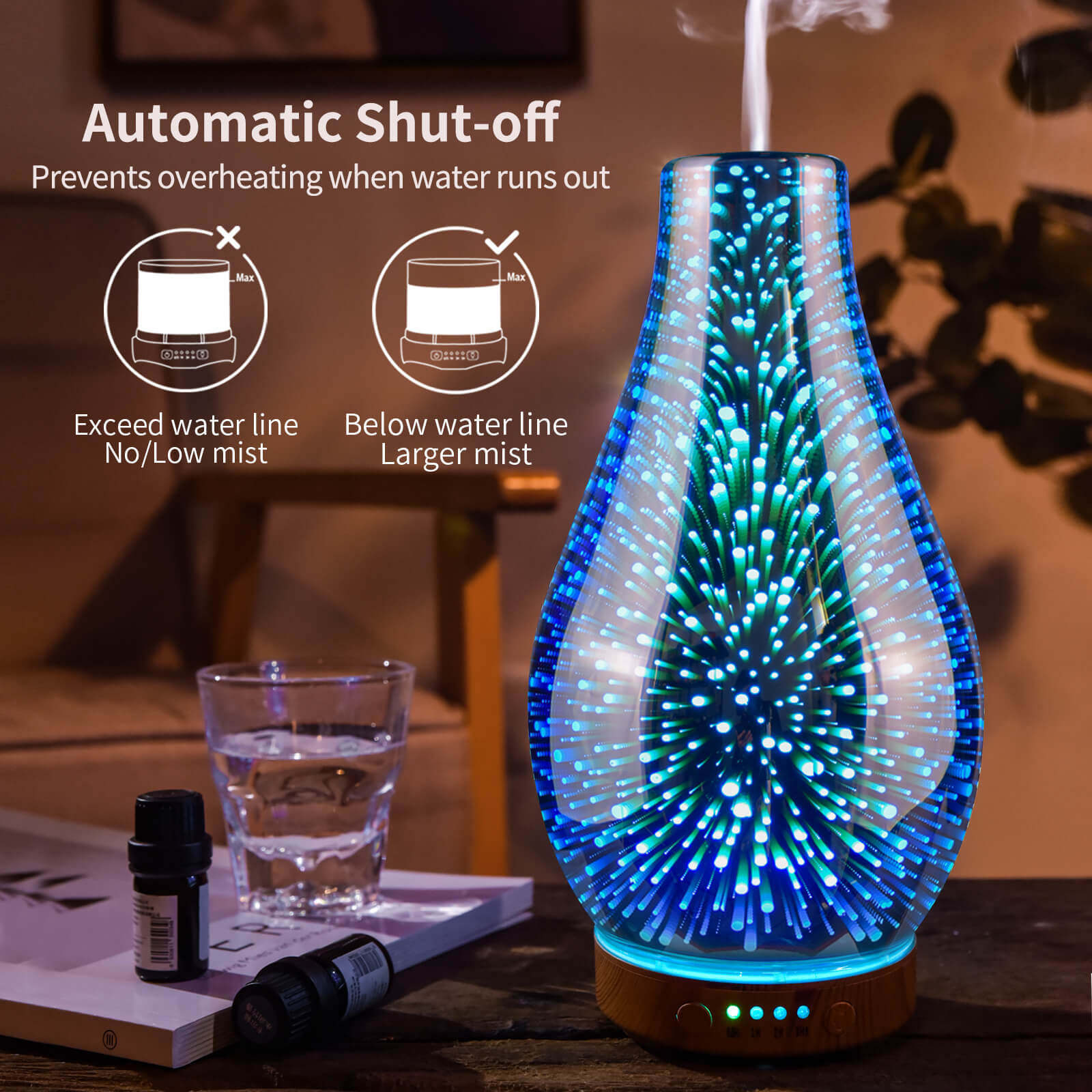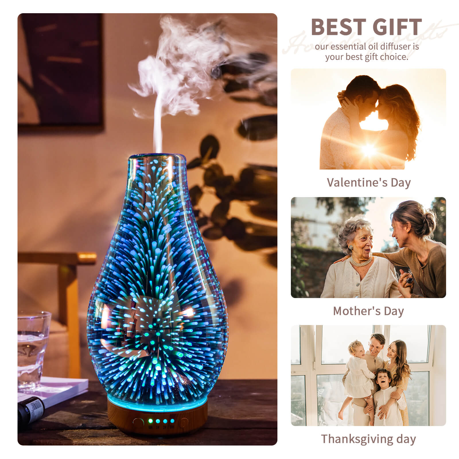 Essential Oil Diffuser 3D Glass Aromatherapy Ultrasonic Humidifier Cool Mist, Auto Shut-Off,Timer Setting, BPA Free for Home Office Hotel Yoga Gym Leisure SPA Gift 100ml
