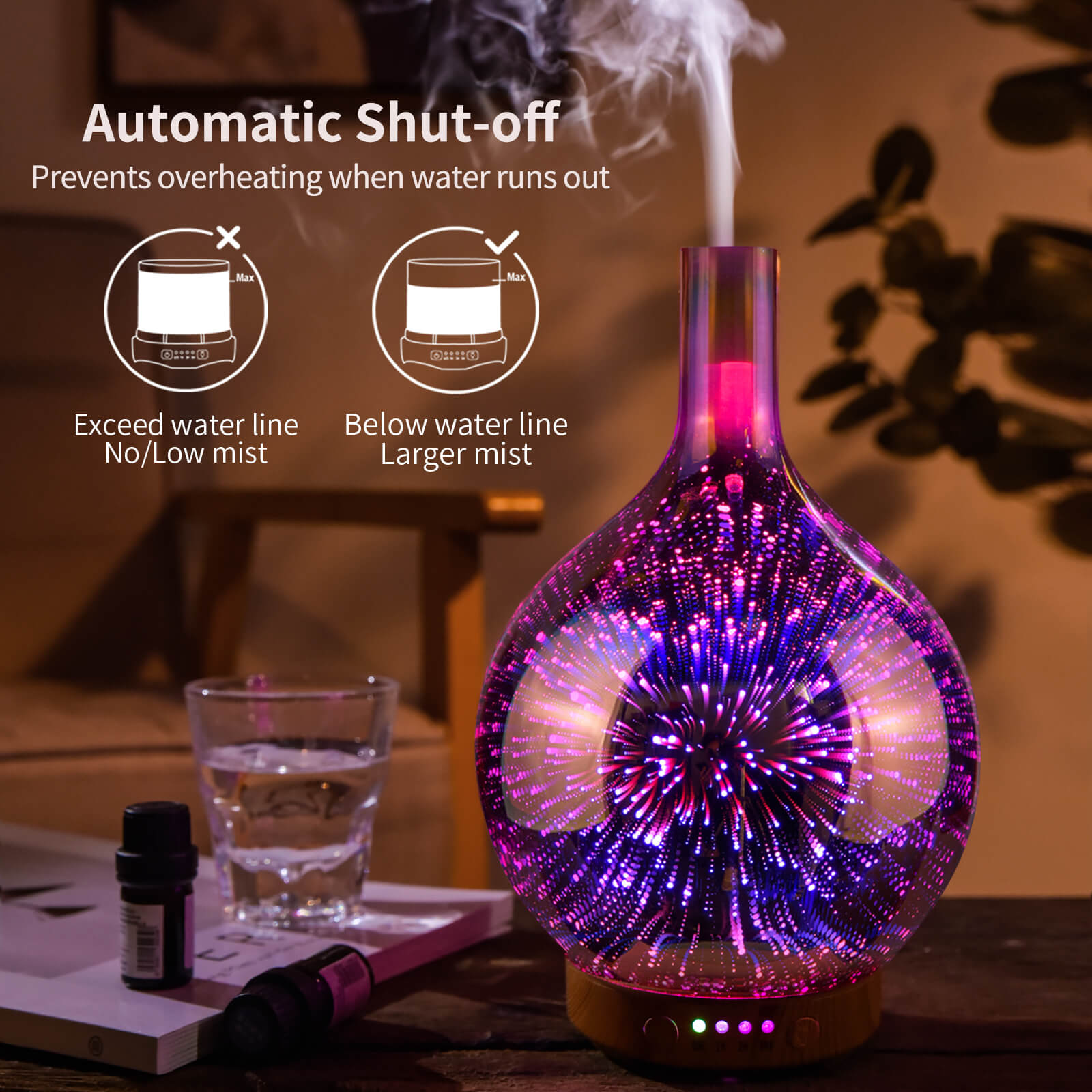 Our glass diffusers are very easy to use. You can choose the mist mode and through pressing the buttons. You can set it run automatically or you can set it to turn off after 0.5H, 1H, 2H,3H