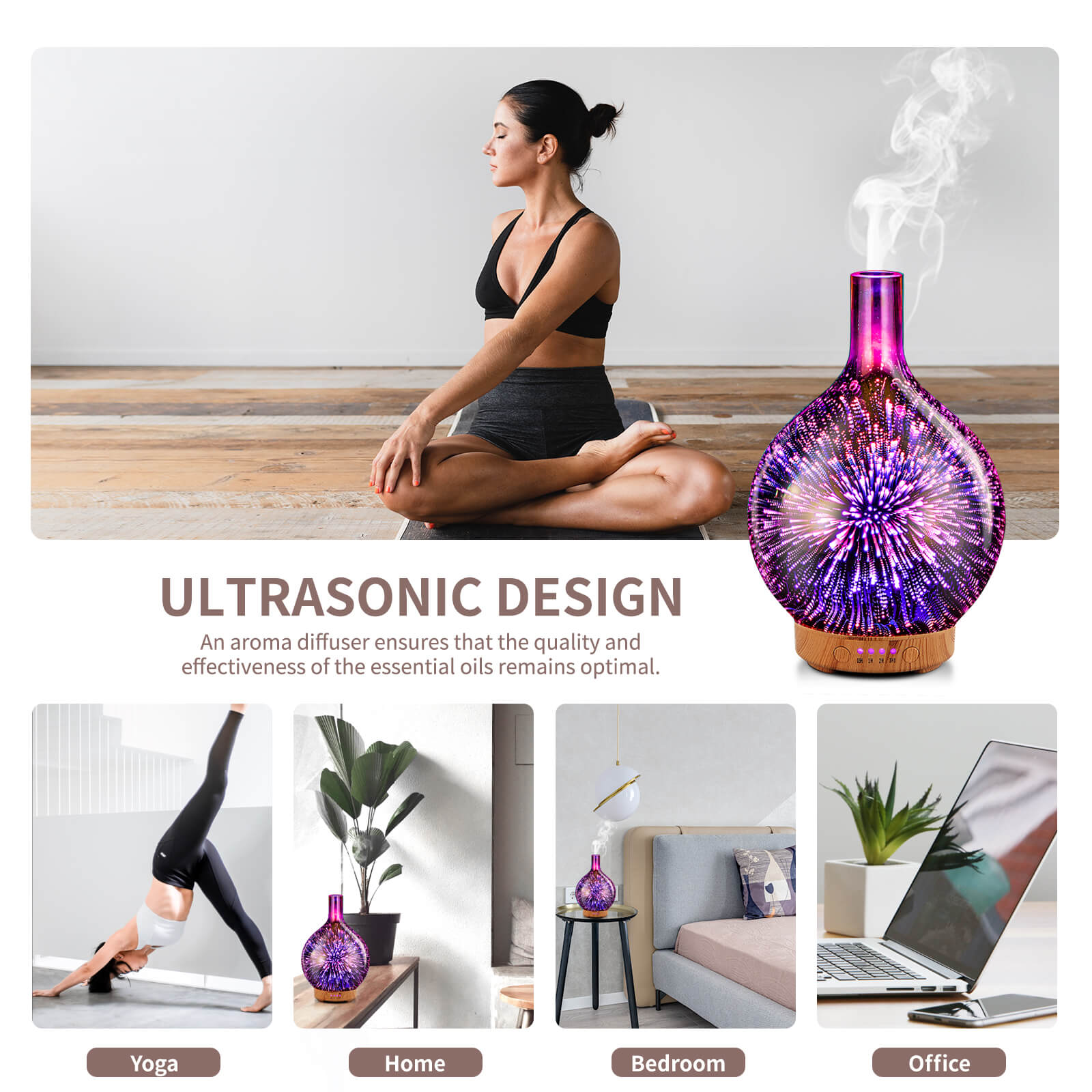 Essential oils should never be heated or else they’ll lose their beneficial properties and will be useless.Our Porseme glass essential oil diffusers are using Ultrasonic Device which is rapid vibration in the water atomizes the water and disperses it into the air.It ensure that the oils retain their effectiveness and quality.A nourishing atmosphere will help relieve anxiety and refund stress. Allowing you to reap their benefits!