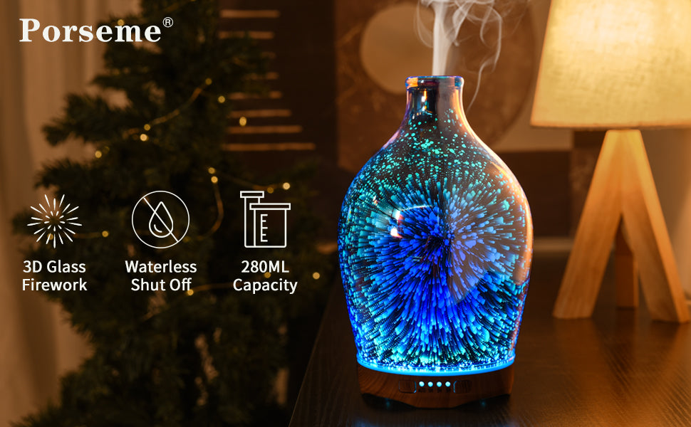 • Essential oils should never be heated or else they’ll lose their beneficial properties and will be useless.Our Porseme glass essential oil diffusers are using Ultrasonic Device which is rapid vibration in the water atomizes the water and disperses it into the air.It ensure that the oils retain their effectiveness and quality.A nourishing atmosphere will help relieve anxiety and refund stress. Allowing you to reap their benefits!