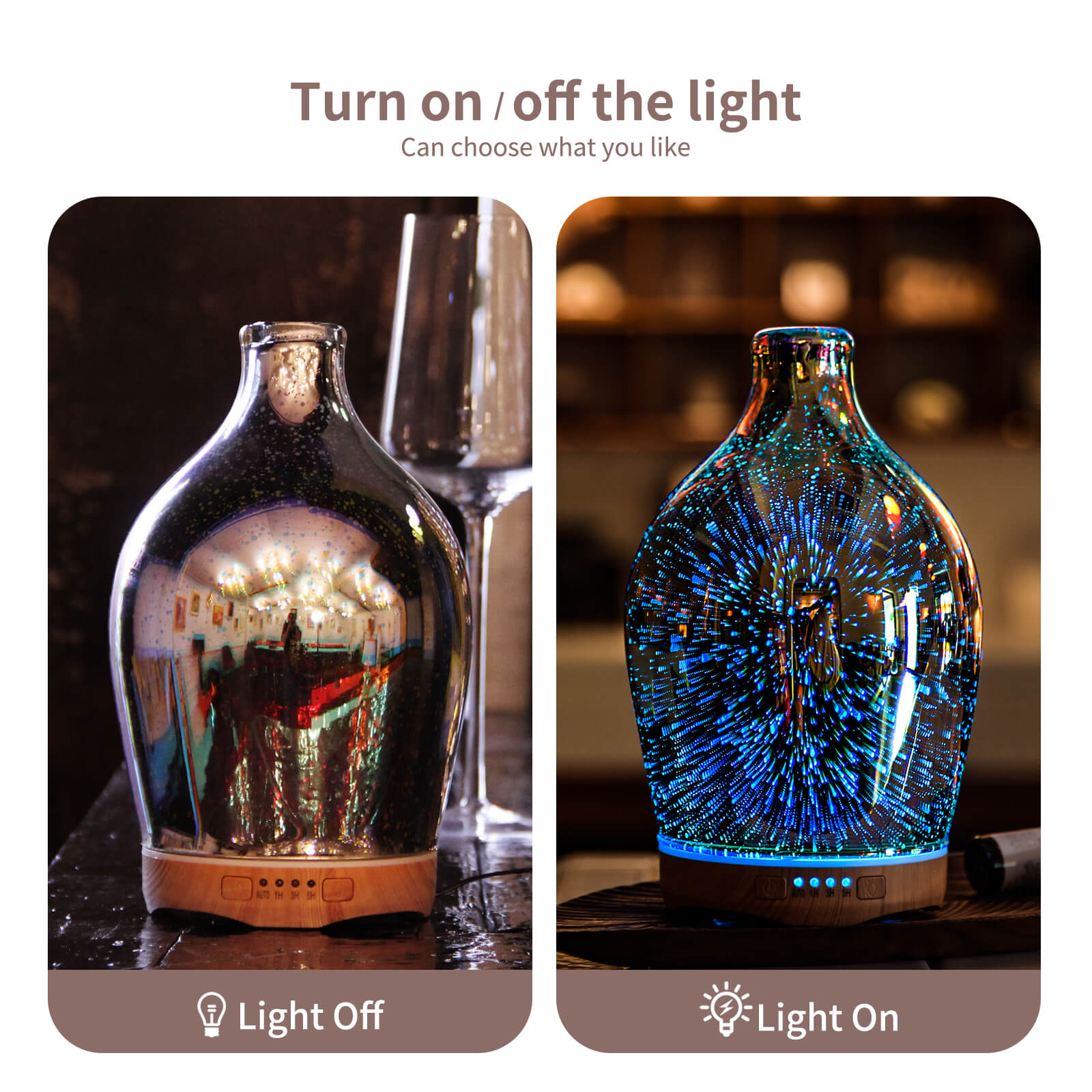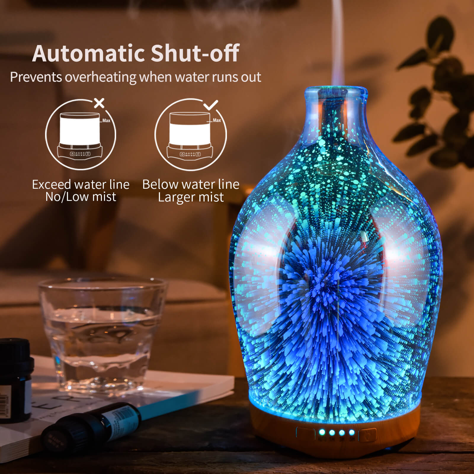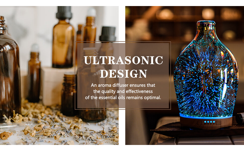 280ml Essential Oil Diffuser 3D Glass Aromatherapy Ultrasonic Humidifier - Auto Shut-Off,Timer Setting, BPA Free for Home Hotel Yoga Leisure SPA Gift