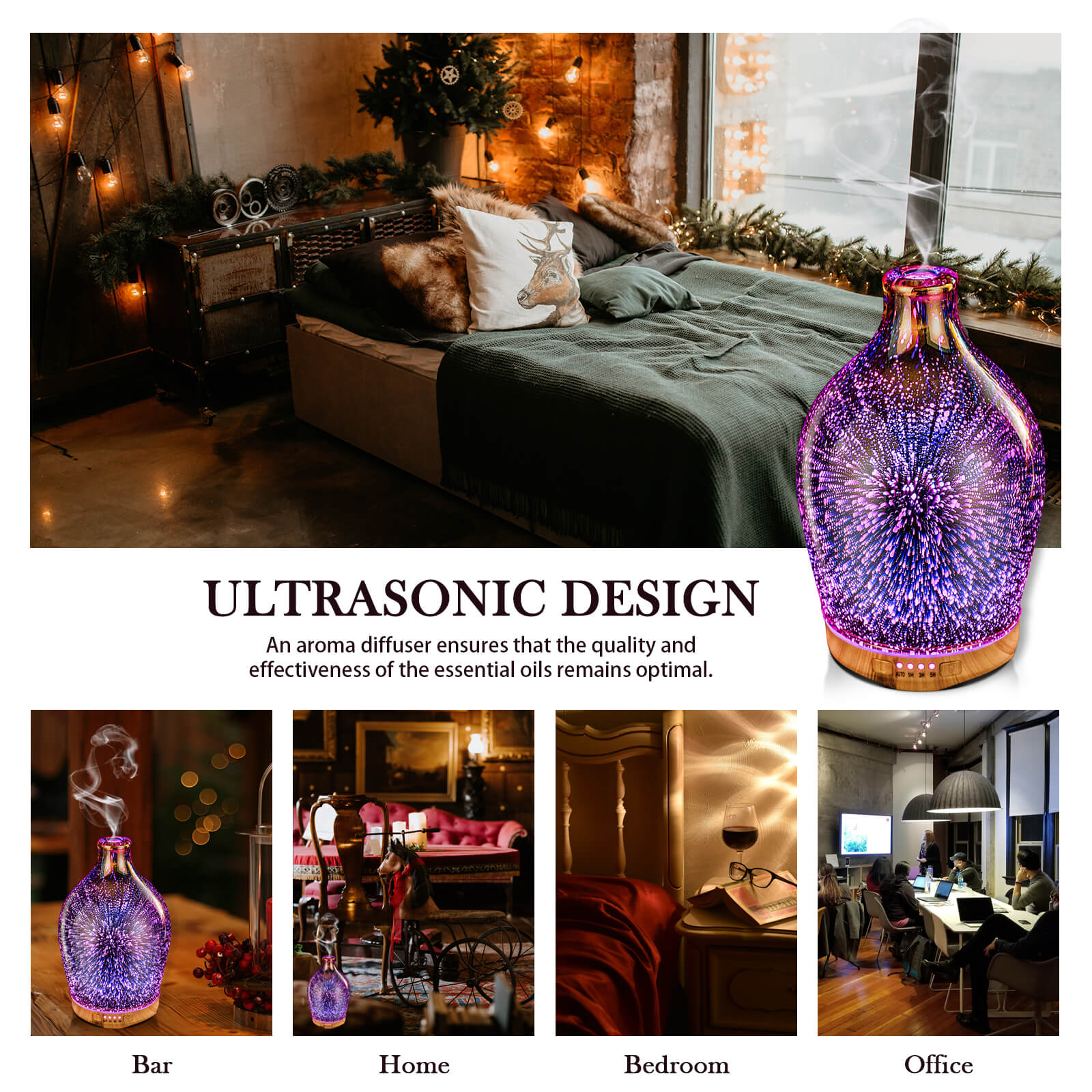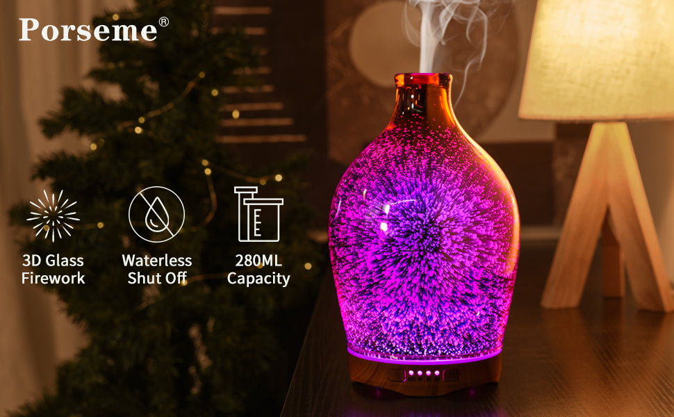 Essential oils should never be heated or else they’ll lose their beneficial properties and will be useless.Our Porseme glass essential oil diffusers are using Ultrasonic Device which is rapid vibration in the water atomizes the water and disperses it into the air.It ensure that the oils retain their effectiveness and quality.A nourishing atmosphere will help relieve anxiety and refund stress. Allowing you to reap their benefits!