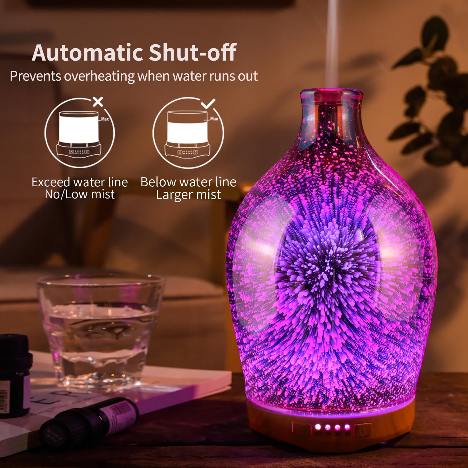 Our glass diffusers are very easy to use. You can choose the mist mode and through pressing the buttons. You can set it run automatically or you can set it to turn off after 1H, 3H, 5H