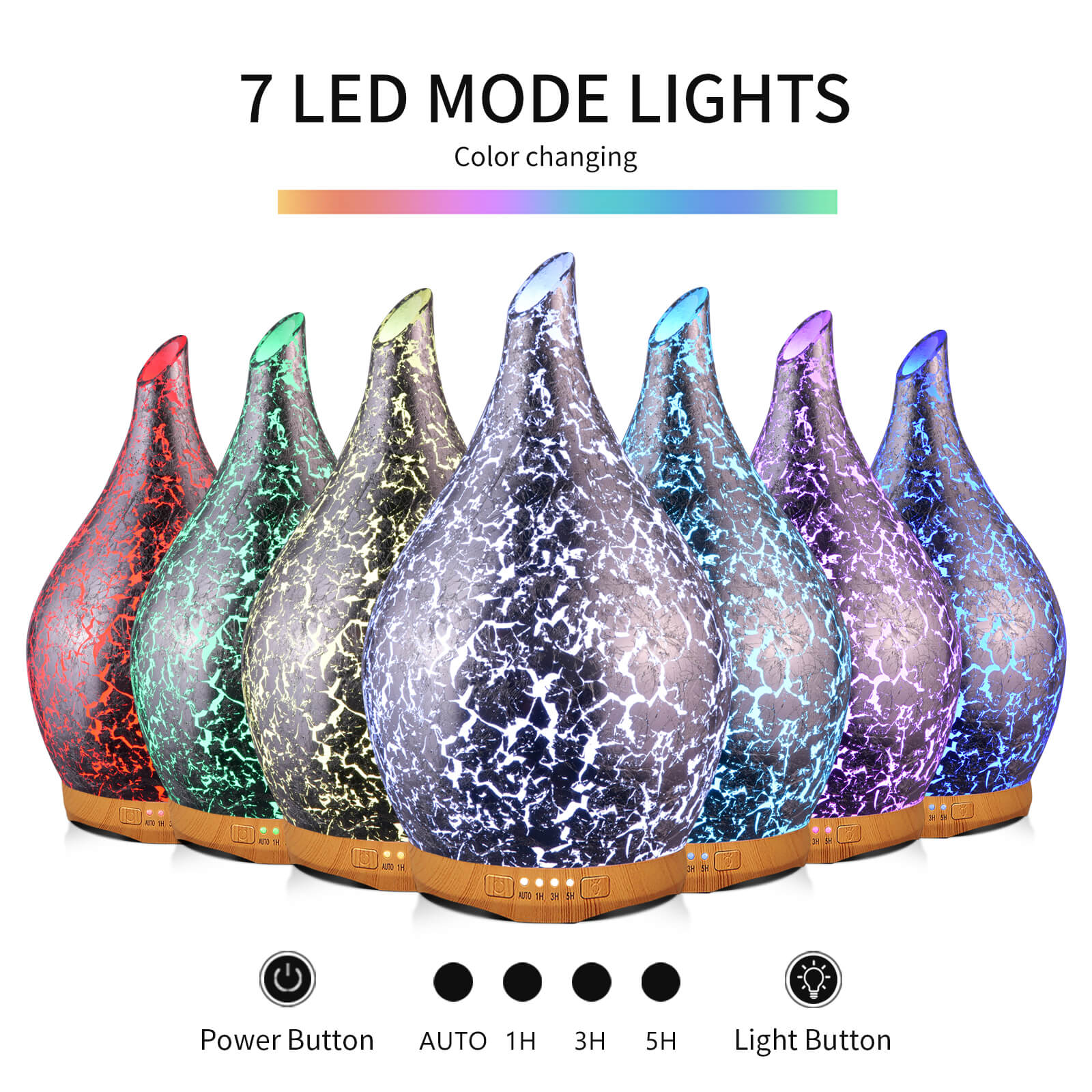 - 【Color Changing Oil Diffuser】 The LED lights can be set to 7 different soothing and mesmerizing colors. Press the “LIGHT” button to adjust the light color you prefer (fix/change color).