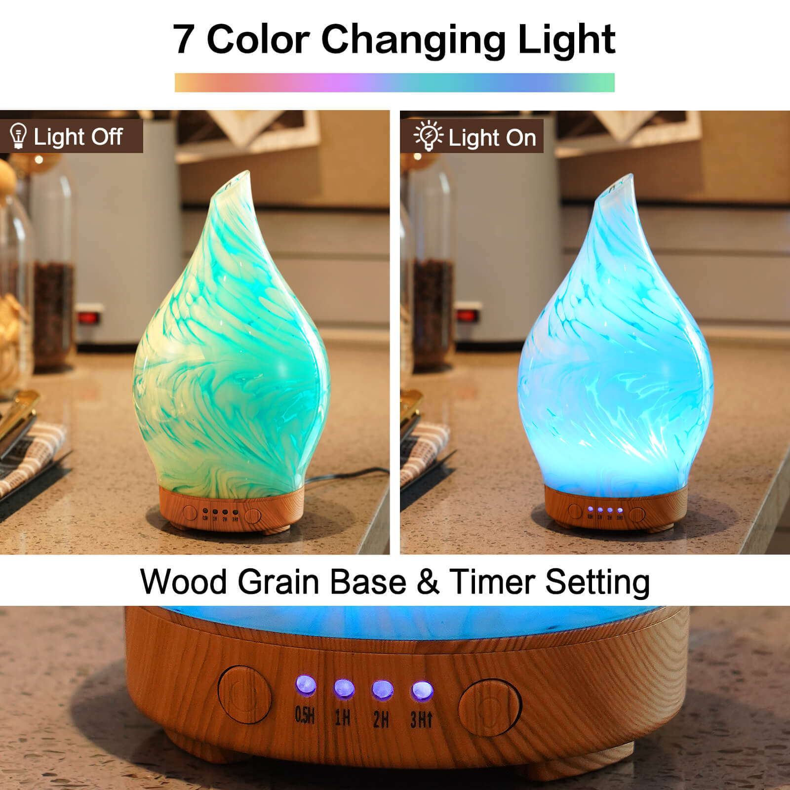 If you are finding a unique gift,this diffuser will be the best choice. The handblown glass like a rare art, fits in any decor scheme in your home,office. The beautiful ambient light and intoxicating fragrance it brings to the room which set the mood for a soothing and romantic evening.