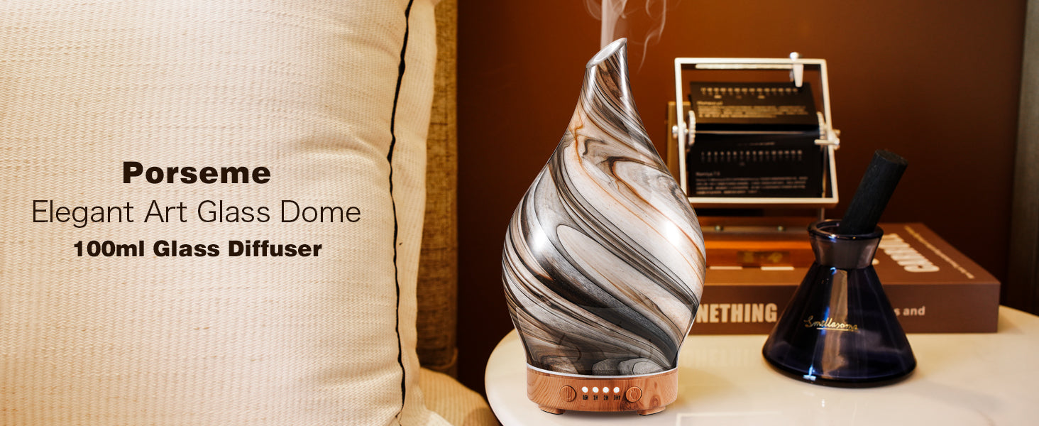 • EASY TO USE - The Porseme 100ml glass diffuser comes with a 100ml essential oil diffuser, a DC power adapter, and an instruction. It is very easy to use and clean.