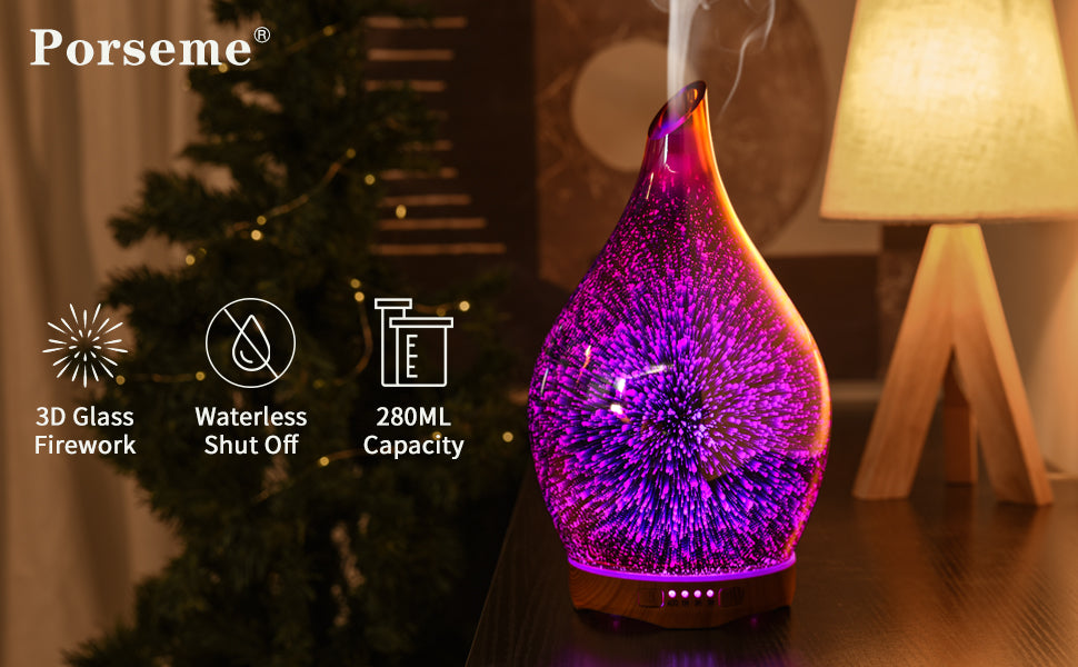 • Essential oils should never be heated or else they’ll lose their beneficial properties and will be useless.Our Porseme glass essential oil diffusers are using Ultrasonic Device which is rapid vibration in the water atomizes the water and disperses it into the air.It ensure that the oils retain their effectiveness and quality.A nourishing atmosphere will help relieve anxiety and refund stress. Allowing you to reap their benefits!